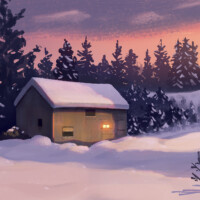 This piece was based on a photograph of my grandparent’s barn, now long gone. I kept it quite loose and from start to finish, it took me about a day. In my own work, I will often take a rough sketch straight into flattish colour blocking, and then will add volume through shadows and light, then textures, fine details and highlights. Then it’s ready for the lighting pass for mood and emotion.